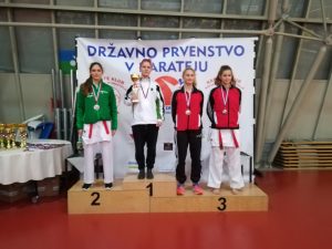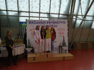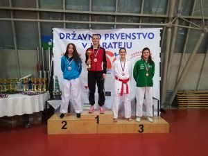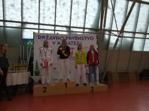 Naslov državnih prvakov so si tako priborili Lan Podpečan (kadeti -57 kg), Nuša Žerjav (kadetinje +54 kg) in Juš Jagarinec, ki pa je svojemu naslovu v borbah dodal še 3. mesto v katah.