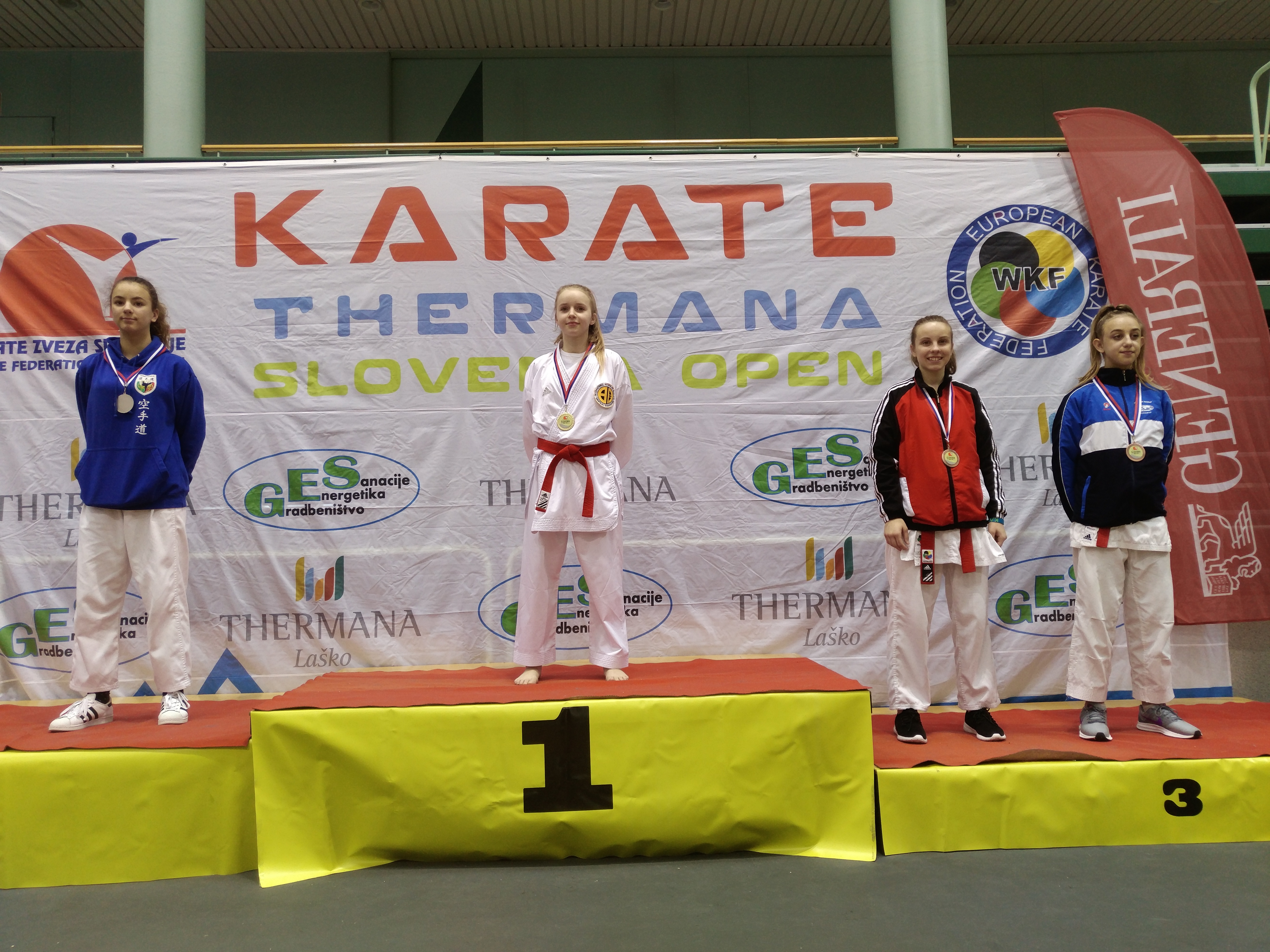 V Laškem je v soboto 10.3.2018 potekal mednarodni turnir Slovenija open, na katerem je sodelovalo 9 držav in 406 tekmovalcev. Naši tekmovalci so ponovno dokazali svojo borbenost in osvojili 7 medalj. Prvo mesto so osvojili Ažbe Mlačnik, Kiara Šporn in Nuša Žerjav, ki je tokrat tekmovala pod okriljem KZS, drugo mesto je osvojil Lan Podpečan v kategoriji kadeti -57kg, tretje pa Zoja Avžner, Nika Šenica ina ekipa katašev (Derča, Mlačnik, Ribič Čvan). Čestitke vsem!!