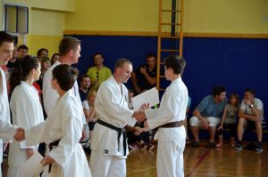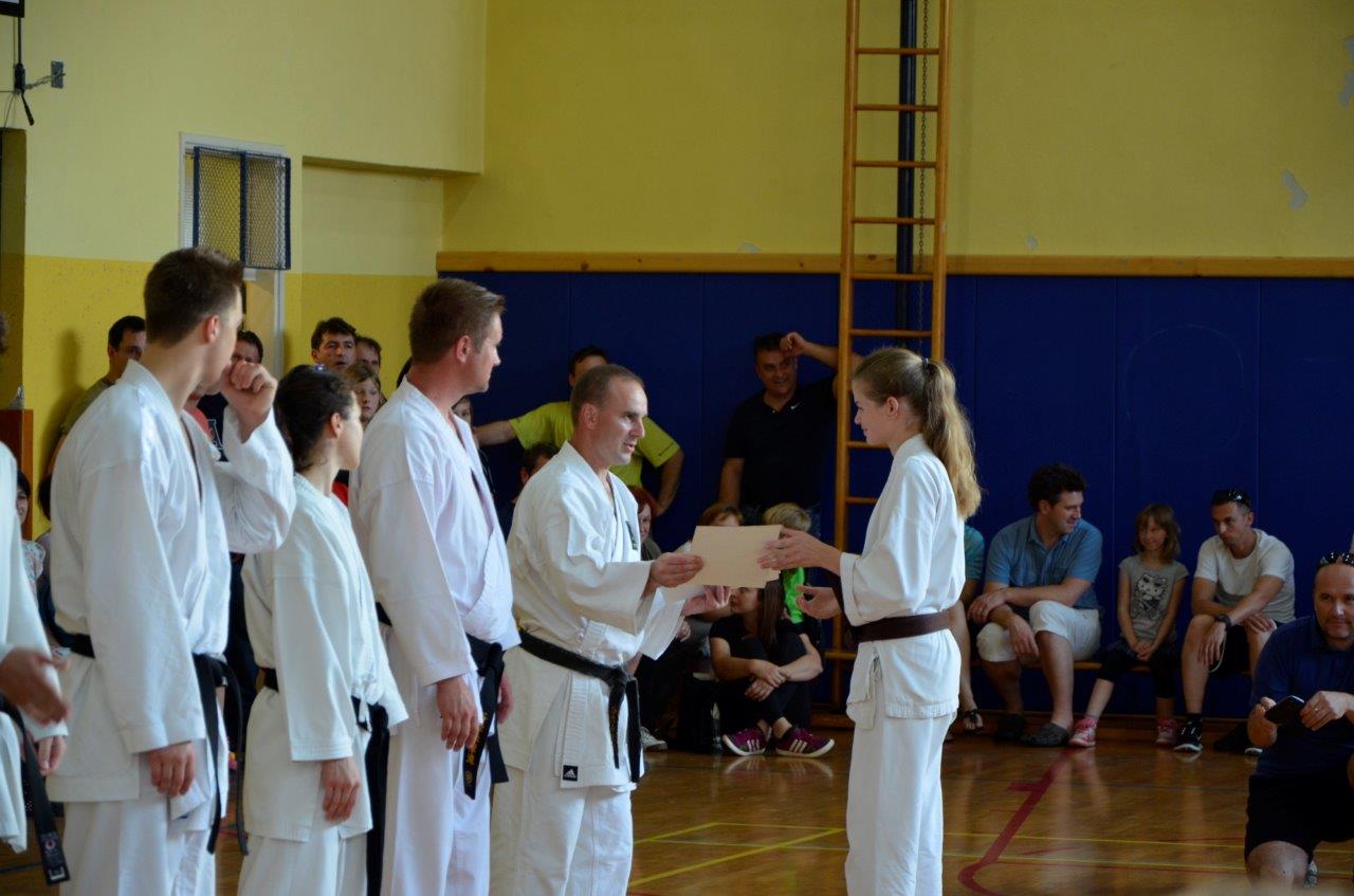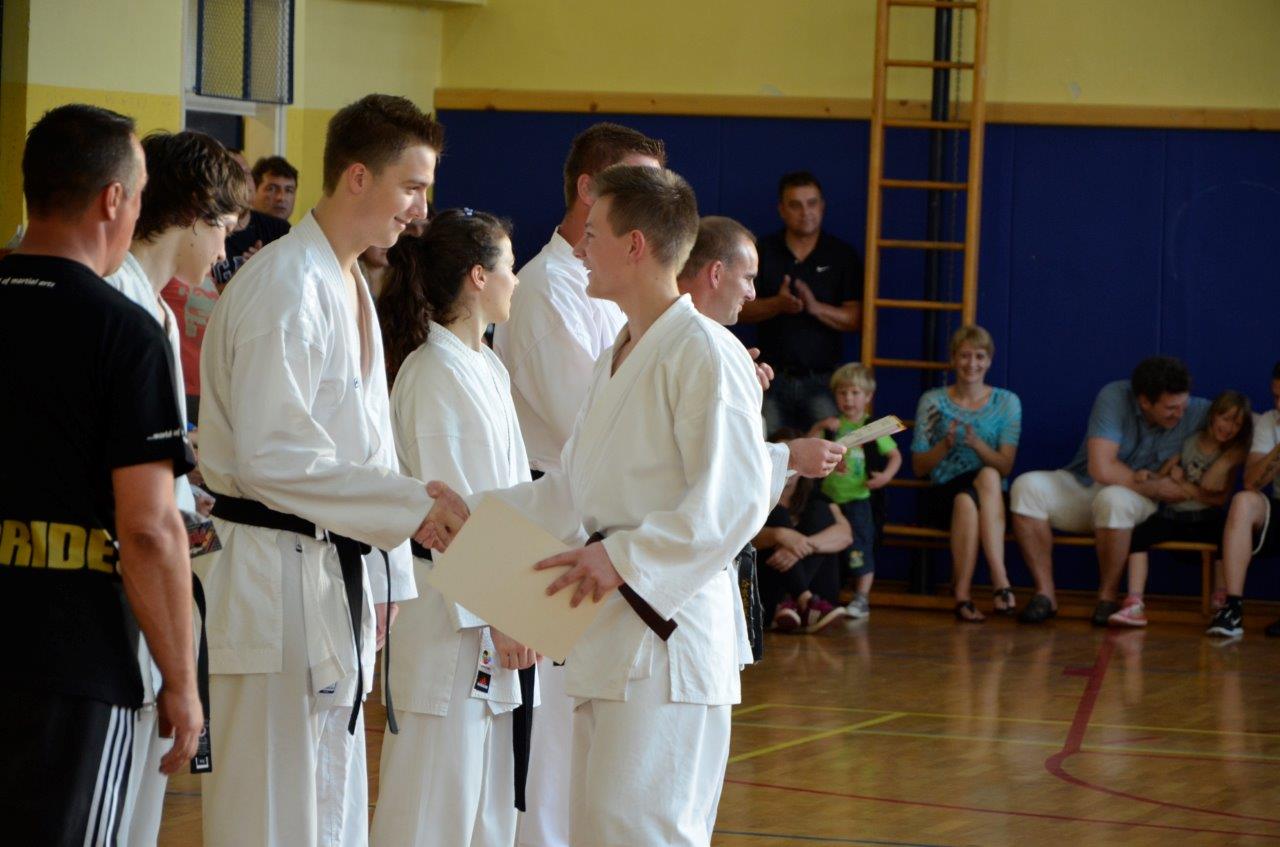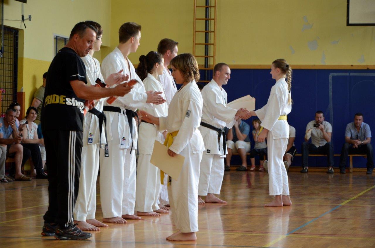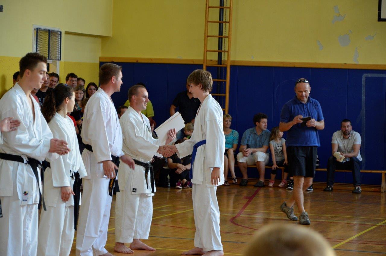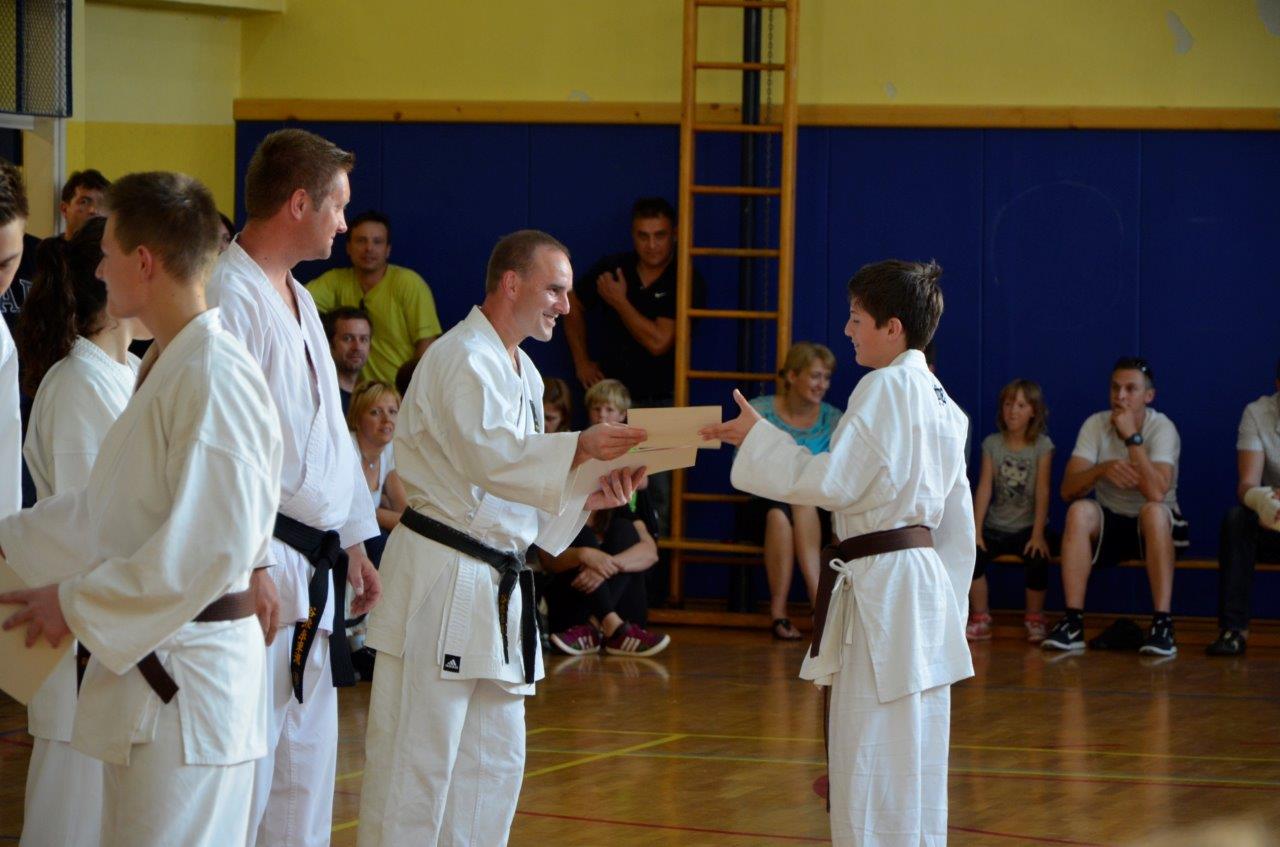 V navado nam je že prišlo, da ob koncu tekmovalne sezone priredimo izpite za polaganje višjih pasov. Tako je bilo tudi letos, in sicer smo se zbrali v petek, 14. junija ob 18.00 uri v telovadnici na Polzeli z namenom, da preverimo, kaj so se naši člani v preteklem letu naučili.